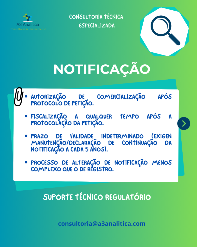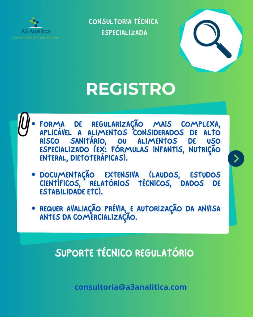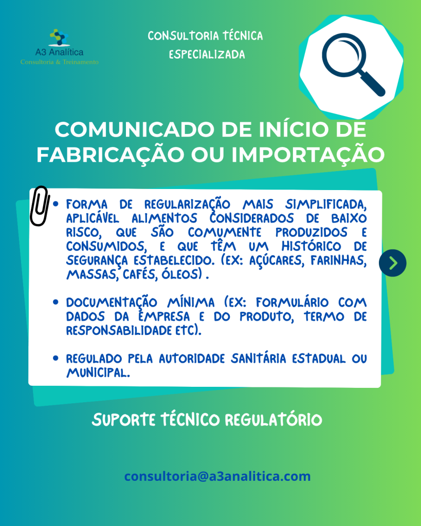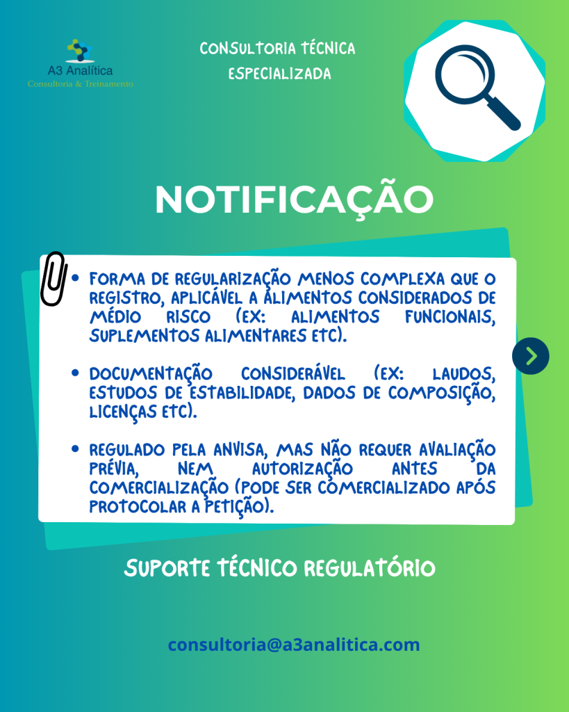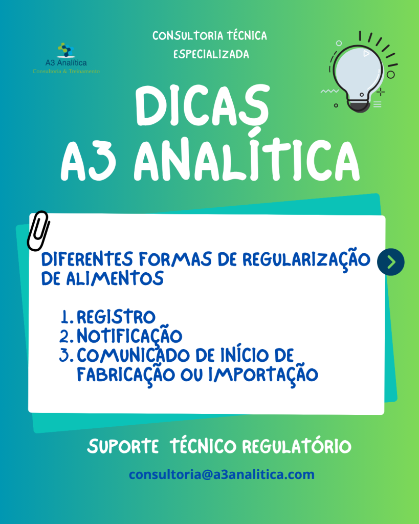 #A3Analítica #Notificação #Comunicado #Registro #Alimentos #SuplementosAlimentares